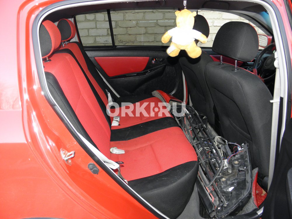 - Комплектация: тканевый салон черного и красного цвета; отделка руля, рычага КПП и вставок в дверях кожей красного цвета; обогрев и электрорегулировка зеркал; электронное табло спидометра; кондиционер; штатная сигнализация; штатная аудиосистема с USB выходом, 6 динамиков; все электростеклоподъемники; заводское затемнение задних стекол; резиновые коврики; брызговики; "детские замки" в задних дверях; автозапирание всех дверей при движении; 2 подушки безопасности; складные задние сиденья 60/40; 4 подголовника (передние регулируются и по высоте и по наклону); противотуманные фары; алюминиевые накладки педалей; запаска и колеса на штатном литье и т.д....