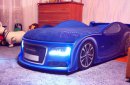 Предлагаем новую кроватку в форме машинки с реалистичным 2D дизайном AUDI A6 синего цвета. Размеры кровати: 196 см х 80 см х 54 см. Спальное мес...