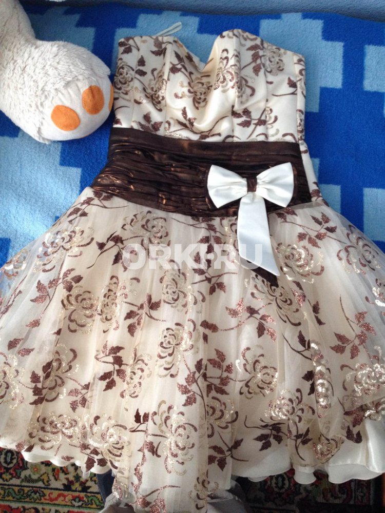 Текст объявления Продам выпускное платье.Бежево-шоколадного цвета,с блестками.Одевала всего один раз.Размер 42-46 (регулируется корсетом)