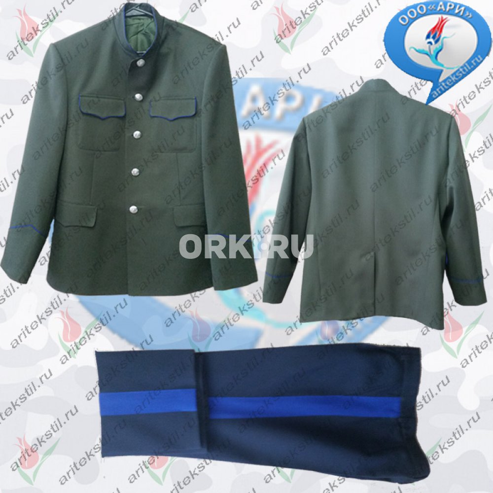 Индивидуальна Пошив на заказ Костюм парадный Оренбургских КАЗАКОВ России Китель и Брюки тк п/ш или габардин цвет оливкого васильковый кантом, брюк синий васильковый лампасам. от ателье магазина "aritekstil",+79226990188. .Товар под заказ для оптовых покупателей Акции и скидки от 2% до 20% + бесплатна доставка все России !.