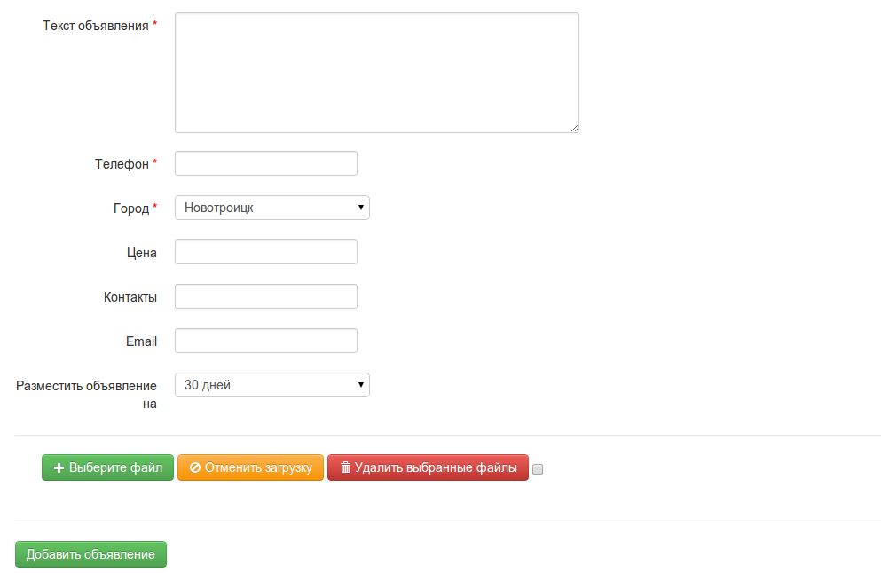 Для этого необходимо перейти в раздел «Добавить объявление» (для того чтобы в последующем вы могли изменять текст своего объявление, необходимо авторизоваться на сайте)